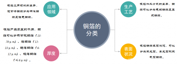 根據銅箔厚度的差異還可以將銅箔分為常規銅箔、薄銅箔、超薄銅箔、極薄銅箔。常規銅箔及薄銅箔主要應用于PCB領(lǐng)域,超薄銅箔、極薄銅箔主要用于鋰電池領(lǐng)域;此外,根據銅箔表面的狀況還可以將銅箔分為雙光面、單光面、雙毛面銅箔。